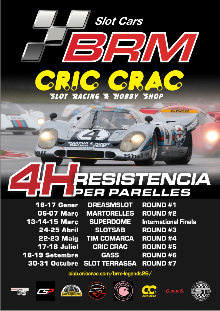 Bienvenidos a la BRM Legends, el campeonato que reúne a los apasionados del slot en una serie de pruebas llenas de emoción, estrategia y adrenalina. Organizado junto con algunos de los clubes más destacados del panorama slot, este certamen recorre los mejores circuitos en un formato de resistencia por parejas que pone a prueba la habilidad, la constancia y el espíritu de equipo.